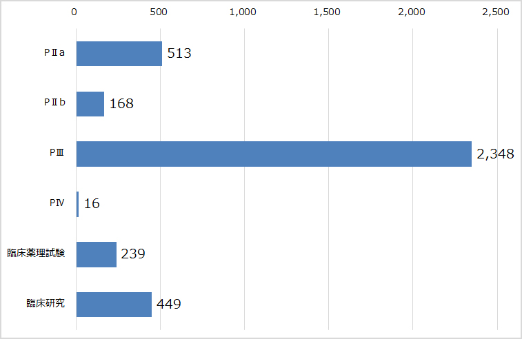 患者を対象とした試験(フェーズ別実施症例数)